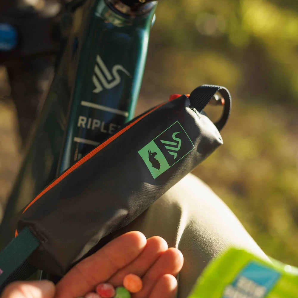 Get the gear off your body and into your frame with our new in-frame storage system. STOW (snacks tools or whatever) fits two bags inside your bike frame for a clean look that’s rattle-free and easy to access.